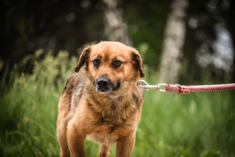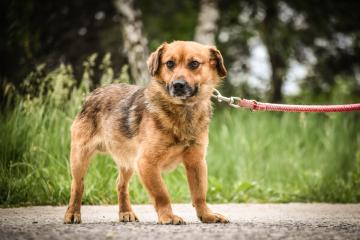 Na początku ze strachu nie chciał nawet chodzić na smyczy. Nie cieszył się też z bliskości człowieka, ale będąc sam na sam z wolontariuszem w schronisku, dawał się głaskać, brać na ręce i wtedy pomalutku odprężał.