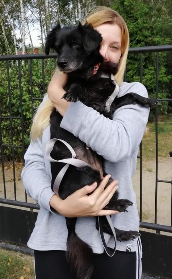 Trafiła do nas podczas pierwszych dni epidemii, wtedy gdy schronisko było zamknięte. Od razu rzuciła nam się w oczy- czarna suczka z dziwnym okiem. Ze schroniska trafiła niemalże od razu na stół operacyjny do profesora Balickiego, który jest dla nas wielkim autorytetem w sprawach psiej okulistyki. Gałka oczna, która była dosłownie wbita do środka musiała zostać usunięta