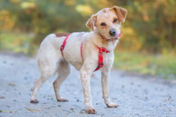 Flea to drobna suczka, o szorstkiej, krótkiej sierści. Jest młodziutka, jednak dość zaniedbana i wychudzona. Przestraszona bardzo w schronisku dużą ilością ludzi i psów. Poza terenem schroniska jest dużo spokojniejsza. potrafi się wówczas odprężyć, ciekawią ją inne psy, chętnie za nimi spaceruje. Szelki i smycz są jej raczej obce. Raczej nie była uczona chodzenia na smyczy, więc uczy się tego teraz w schronisku. W obecności z człowieka, którego pozna odpręża się, merda ogonkiem. Na rękach bardzo się wycisza, przytula i uspokaja. Flea lubi węszyć. Boi się dużych, głośnych i szybkich aut; zapewne nie mieszkała w mieście. Przejawia też dużą ciekawość świata, jak na młodego pieska przystało. Szukamy jej domu, w którym będzie skarbem, pieszczoszkiem i czyimś serduszkiem. Wykluczamy dom z małymi dziećmi. Nie jest to również piesek dla osób w podeszłym wieku.
