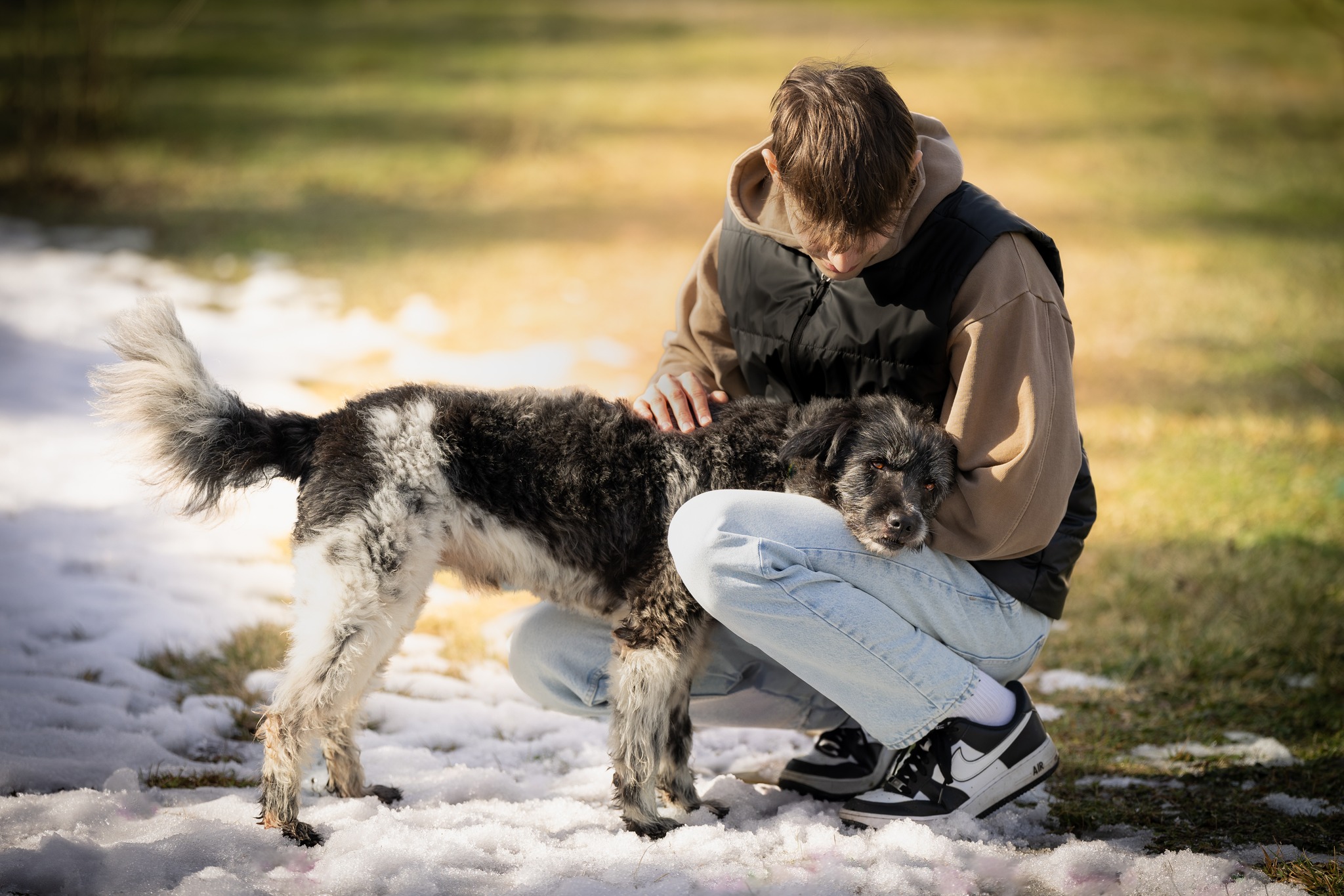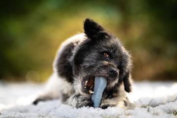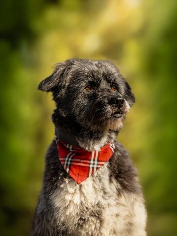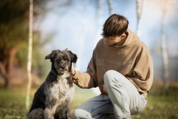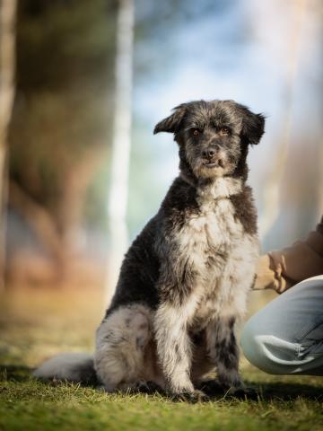 Orun to pies , który ufa wszystkim i od każdego potrzebuje głasków w ilości XXL:) To także wulkan energii, która powoduje, że jak tylko słyszy, że idzie na spacer to skacze, szczeka i cieszy się całym sobą. Na spacerze wszystko go interesuje, czasem w przypływie podniecenia przyspiesza, ale wystarczy delikatnie pociągnąć za smycz i już się podporządkowuje. Niemniej jednak jest pieskiem, który kocha zabawy na dworze i bieganie. Uwielbia sępić jedzenie (wszystko co je człowiek jest najlepsze). Dla tego pieska najlepszy byłby dom pełen ludzi, których mógłby obdarzyć miłością. Orun jest bardzo pogodny i otwarty. Obecnie mieszka w domu tymczasowym - zachowuje czystość, a gdy zostaje sam niczego nie niszczy. To wielki pieszczoch, który uwielbia pielęgnację, a wizyty u weterynarza należą również do jego przyjemności:) Orun mimo swoich przejść i bezdomności kocha i ufa ludziom. Dla niego najważniejszy jest człowiek i nic mu więcej do szczęścia nie jest potrzebne. Ten pies jest gwiazdką z nieba, która spadła na ziemię, aby uczyć ludzi jak można kochać, jak można cieszyć się ze wszystkiego, jak można być przyjacielskim i oddanym.